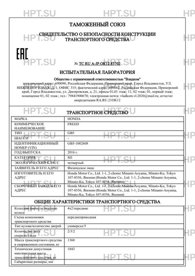| Марка ТС | HONDA |