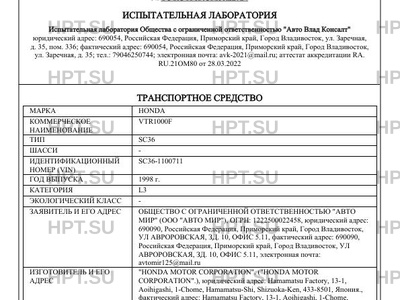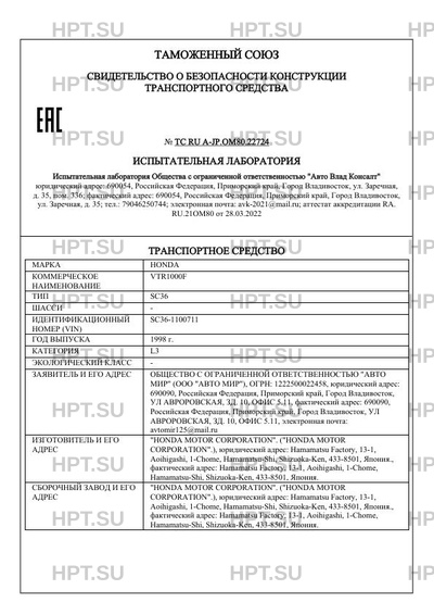 Предприятие-изготовитель "HONDA MOTOR CORPORATION". ("HONDA MOTOR CORPORATION".), юридический адрес: Hamamatsu Factory, 13-1, Aoihigashi, 1-Chome, Hamamatsu-Shi, Shizuoka-Ken, 433-8501, Япония., фактический адрес: Hamamatsu Factory, 13-1, Aoihigashi, 1-Chome, Hamamatsu-Shi, Shizuoka-Ken, 433-8501, Япония.