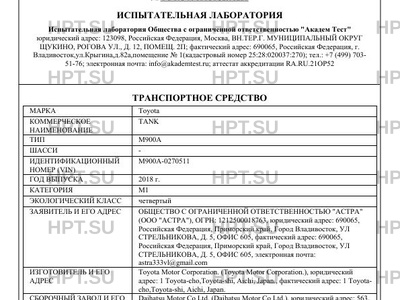 | Категория ТС | M1 |