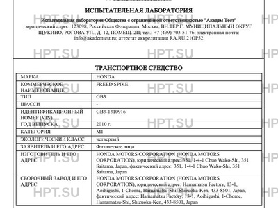 | Предприятие-изготовитель | HONDA MOTORS CORPORATION |