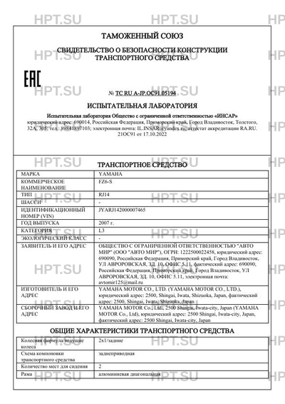 | Марка ТС | YAMAHA |