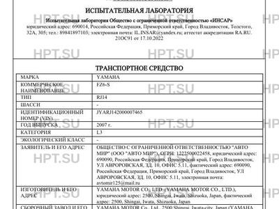 | Предприятие-изготовитель | YAMAHA MOTOR CO., LTD. (YAMAHA MOTOR CO., LTD.), юридический адрес: 2500, Shingai, Iwata, Shizuoka, Japan, фактический адрес: 2500, Shingai, Iwata, Shizuoka, Japan |