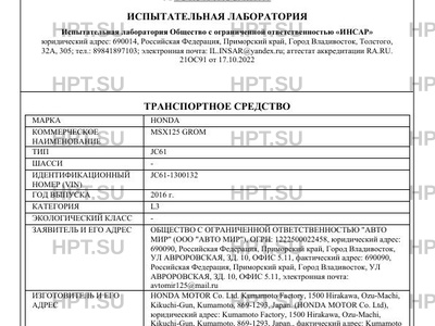 | Коммерческое наименование | MSX125 GROM |