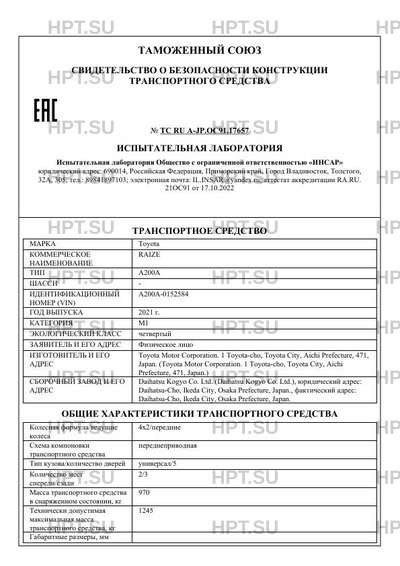 | Предприятие-изготовитель | Toyota Motor Corporation. 1 Toyota-cho, Toyota City, Aichi Prefecture, 471, Japan. (Toyota Motor Corporation. 1 Toyota-cho, Toyota City, Aichi Prefecture, 471, Japan.) |