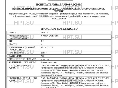 | Предприятие-изготовитель | "HONDA MOTOR CORPORATION ("HONDA MOTOR CORPORATION), юридический адрес: Hamamatsu Factory, 13-1, Aoihigashi, 1-Chome, Hamamatsu-Shi, Shizuoka-Ken, 433-8501, Япония, фактический адрес: Hamamatsu Factory, 13-1, Aoihigashi, 1-Chome, Hamamatsu-Shi, Shizuoka- Ken, 433-8501, Япония |