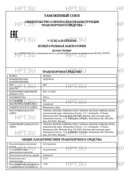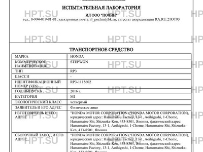 Предприятие-изготовитель "HONDA MOTOR CORPORATION ("HONDA MOTOR CORPORATION), юридический адрес: Hamamatsu Factory, 13-1, Aoihigashi, 1-Chome, Hamamatsu-Shi, Shizuoka-Ken, 433-8501, Япония, фактический адрес: Hamamatsu Factory, 13-1, Aoihigashi, 1-Chome, Hamamatsu-Shi, Shizuoka- Ken, 433-8501, Япония