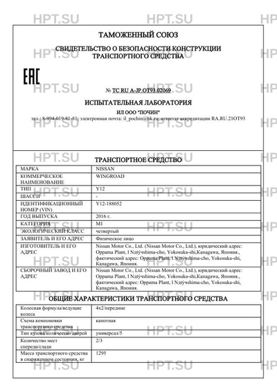 | Предприятие-изготовитель | Nissan Motor Со., Ltd. (Nissan Motor Со., Ltd.), юридический адрес: Орраmа Plant, l Nдtчshimа-сhо, Yokosuka-shi,Капаgаwа, Япония., фактический адрес: Орраmа Plant, l Nдtчshimа-сhо, Yokosuka-shi, Капаgаwа, Япония. |