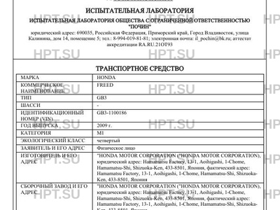 | Предприятие-изготовитель | "HONDA MOTOR CORPORATION ("HONDA MOTOR CORPORATION), юридический адрес: Hamamatsu Factory, 13-1, Aoihigashi, 1-Chome, Hamamatsu-Shi, Shizuoka-Ken, 433-8501, Япония, фактический адрес: Hamamatsu Factory, 13-1, Aoihigashi, 1-Chome, Hamamatsu-Shi, Shizuoka- Ken, 433-8501, Япония |
