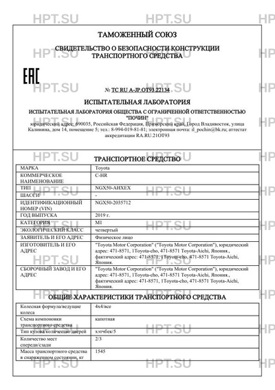 Предприятие-изготовитель "Toyota Motor Corporation" ("Toyota Motor Corporation"), юридический адрес: 471-8571, 1Toyota-cho, 471-8571 Toyota-Aichi, Япония., фактический адрес: 471-8571, 1Toyota-cho, 471-8571 Toyota-Aichi, Япония.