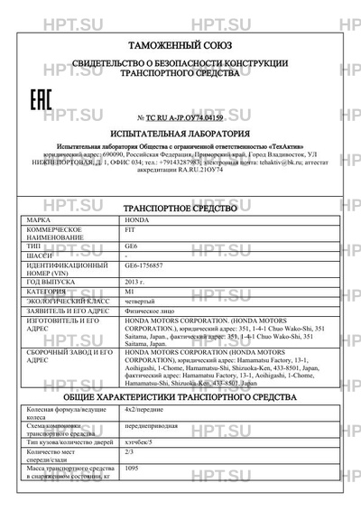 | Марка ТС | HONDA |