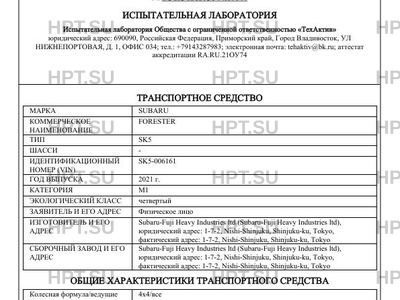 | Предприятие-изготовитель | Subaru-Fuji Heavy Industries ltd (Subaru-Fuji Heavy Industries ltd), юридический адрес: 1-7-2, Nishi-Shinjuku, Shinjuku-ku, Tokyo, фактический адрес: 1-7-2, Nishi-Shinjuku, Shinjuku-ku, Tokyo |