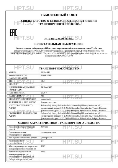 | Предприятие-изготовитель | Subaru-Fuji Heavy Industries ltd. (Subaru-Fuji Heavy Industries ltd.), юридический адрес: 1-7-2, Nishi-Shinjuku, Shinjuku-ku, Tokyo, Япония., фактический адрес: 1-7-2, Nishi-Shinjuku, Shinjuku-ku, Tokyo, Япония. |