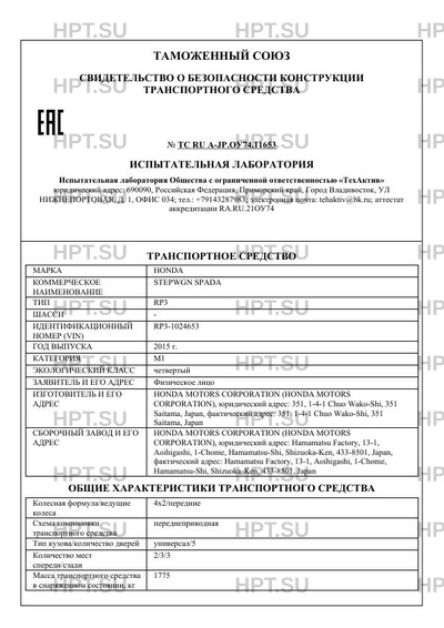 | Предприятие-изготовитель | HONDA MOTORS CORPORATION (HONDA MOTORS CORPORATION), юридический адрес: 351, 1-4-1 Chuo Wako-Shi, 351 Saitama, Japan, фактический адрес: 351, 1-4-1 Chuo Wako-Shi, 351 Saitama, Japan |