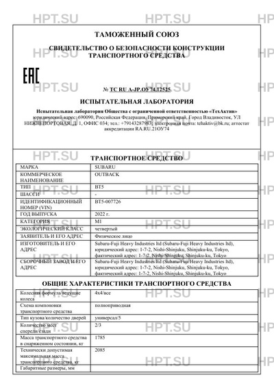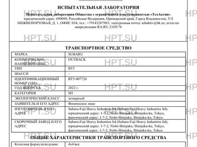 | Марка ТС | SUBARU |