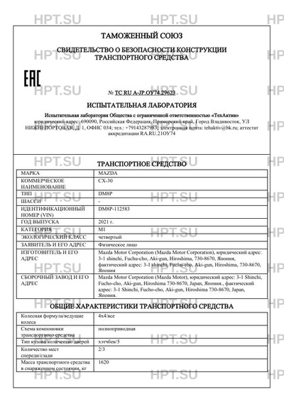 | Предприятие-изготовитель | Mazda Motor Corporation (Mazda Motor Corporation), юридический адрес: 3-1 shinchi, Fuchu-cho, Aki-gun, Hiroshima, 730-8670, Япония, фактический адрес: 3-1 shinchi, Fuchu-cho, Aki-gun, Hiroshima, 730-8670, Япония |