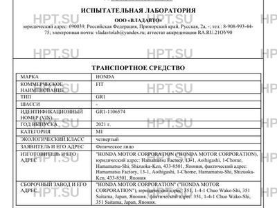 | Предприятие-изготовитель | "HONDA MOTOR CORPORATION ("HONDA MOTOR CORPORATION), юридический адрес: Hamamatsu Factory, 13-1, Aoihigashi, 1-Chome, Hamamatsu-Shi, Shizuoka-Ken, 433-8501, Япония, фактический адрес: Hamamatsu Factory, 13-1, Aoihigashi, 1-Chome, Hamamatsu-Shi, Shizuoka- Ken, 433-8501, Япония |