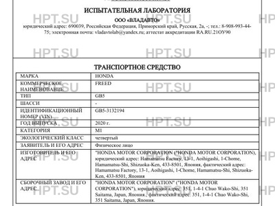 | Предприятие-изготовитель | "HONDA MOTOR CORPORATION ("HONDA MOTOR CORPORATION), юридический адрес: Hamamatsu Factory, 13-1, Aoihigashi, 1-Chome, Hamamatsu-Shi, Shizuoka-Ken, 433-8501, Япония, фактический адрес: Hamamatsu Factory, 13-1, Aoihigashi, 1-Chome, Hamamatsu-Shi, Shizuoka- Ken, 433-8501, Япония |