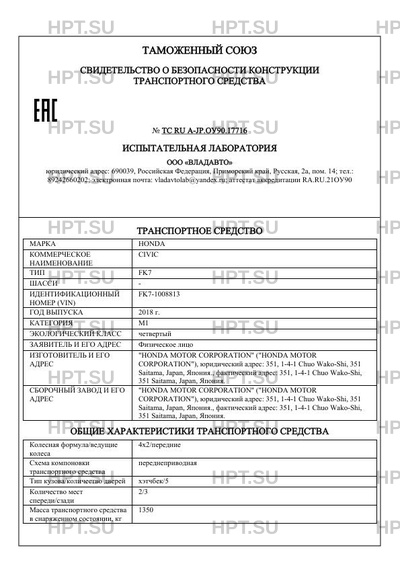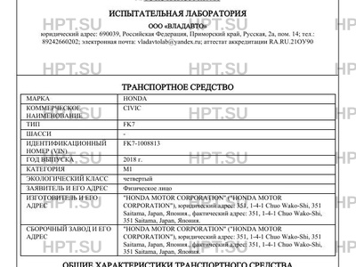| Предприятие-изготовитель | "HONDA MOTOR CORPORATION" ("HONDA MOTOR CORPORATION"), юридический адрес: 351, 1-4-1 Chuo Wako-Shi, 351 Saitama, Japan, Япония., фактический адрес: 351, 1-4-1 Chuo Wako-Shi, 351 Saitama, Japan, Япония. |