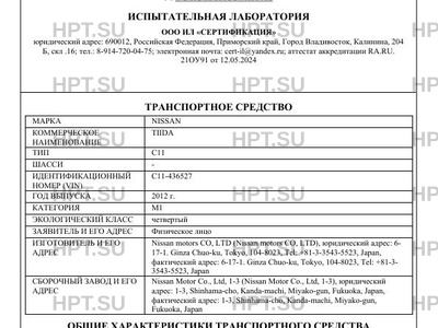| Предприятие-изготовитель | Nissan motors CO, LTD |