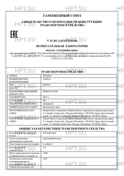 | Номер документа | ТС RU А-JP.ОУ91.03446 |