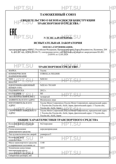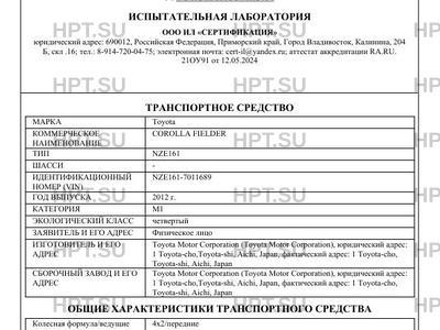 Предприятие-изготовитель Toyota Motor Corporation (Toyota Motor Corporation), юридический адрес: 1 Toyota-cho,Toyota-shi, Aichi, Japan, фактический адрес: 1 Toyota-cho, Toyota-shi, Aichi, Japan