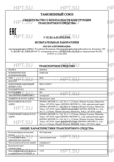 | Марка ТС | HONDA |