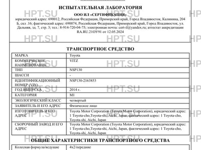 | Предприятие-изготовитель | Toyota Motor Corporation (Toyota Motor Corporation), юридический адрес: 1 Toyota-cho,Toyota-shi, Aichi, Japan, фактический адрес: 1 Toyota-cho, Toyota-shi, Aichi, Japan |