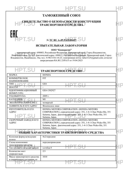 Предприятие-изготовитель HONDA MOTORS CORPORATION. (HONDA MOTORS CORPORATION.), юридический адрес: 351, 1-4-1 Chuo Wako-Shi, 351 Saitama, Japan., фактический адрес: 351, 1-4-1 Chuo Wako-Shi, 351 Saitama, Japan.