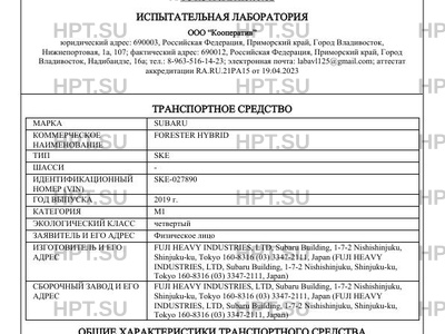 Предприятие-изготовитель FUJI HEAVY INDUSTRIES, LTD, Subaru Building, 1-7-2 Nishishinjuku, Shinjuku-ku, Tokyo 160-8316 (03) 3347-2111, Japan (FUJI HEAVY INDUSTRIES, LTD, Subaru Building, 1-7-2 Nishishinjuku, Shinjuku-ku, Tokyo 160-8316 (03) 3347-2111, Japan)