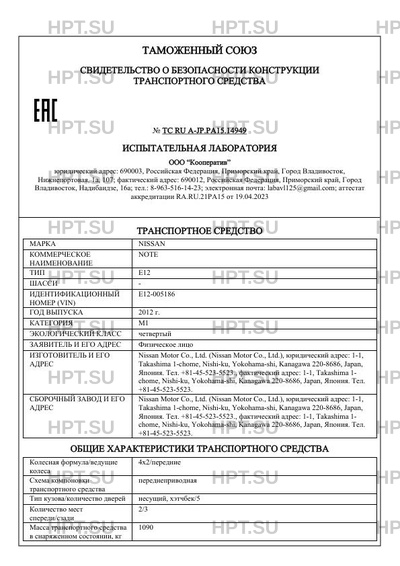 | Тип ТС | E12 |