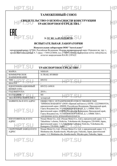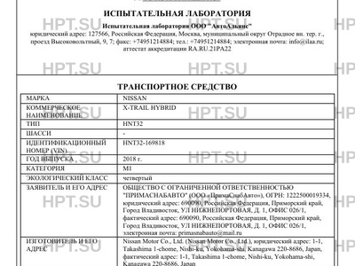 Предприятие-изготовитель Nissan Motor Co., Ltd. (Nissan Motor Co., Ltd.), юридический адрес: 1-1, Takashima 1-chome, Nishi-ku, Yokohama-shi, Kanagawa 220-8686, Japan, фактический адрес: 1-1, Takashima 1-chome, Nishi-ku, Yokohama-shi, Kanagawa 220-8686, Japan
