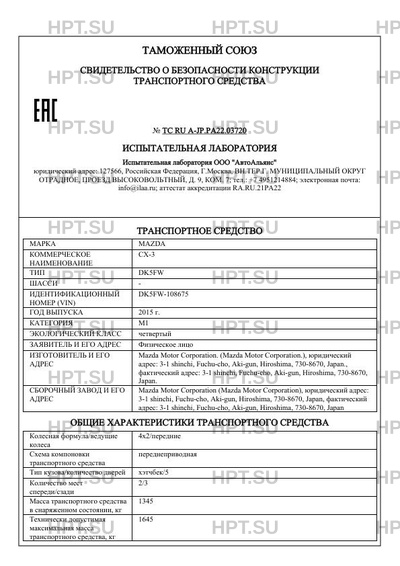 | Коммерческое наименование | CX-3 |