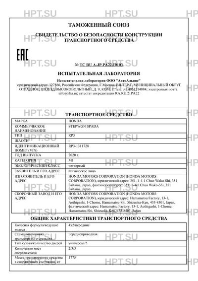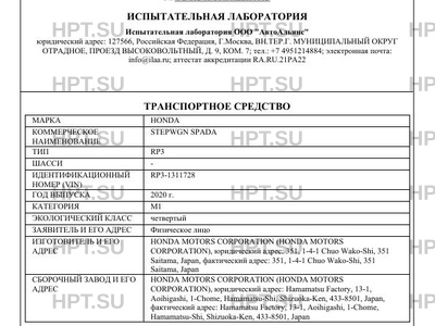 Предприятие-изготовитель HONDA MOTORS CORPORATION (HONDA MOTORS CORPORATION), юридический адрес: 351, 1-4-1 Chuo Wako-Shi, 351 Saitama, Japan, фактический адрес: 351, 1-4-1 Chuo Wako-Shi, 351 Saitama, Japan