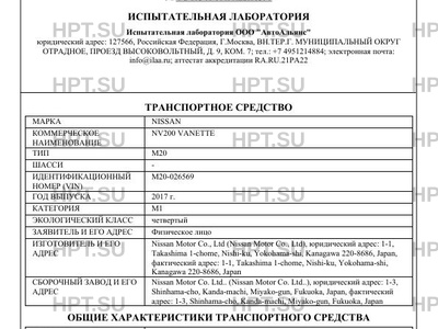 | Коммерческое наименование | NV200 VANETTE |