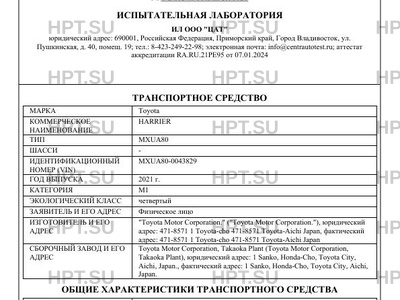 Предприятие-изготовитель "Toyota Motor Corporation." ("Toyota Motor Corporation."), юридический адрес: 471-8571 1 Toyota-cho 471-8571 Toyota-Aichi Japan, фактический адрес: 471-8571 1 Toyota-cho 471-8571 Toyota-Aichi Japan