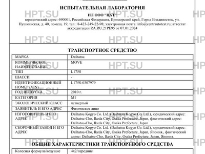 | Предприятие-изготовитель | Daihatsu Kogyo Co. Ltd. (Daihatsu Kogyo Co. Ltd.), юридический адрес: Daihatsu-Cho, Ikeda City, Osaka Prefecture, Japan, фактический адрес: Daihatsu-Cho, Ikeda City, Osaka Prefecture, Japan |
