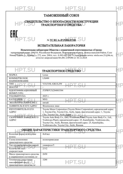 | Предприятие-изготовитель | Toyota Motor Corporation (Toyota Motor Corporation), юридический адрес: 1, Toyota-Cho, Toyota City, Aichi, Japan, фактический адрес: 1, Toyota- Cho, Toyota City, Aichi, Japan |