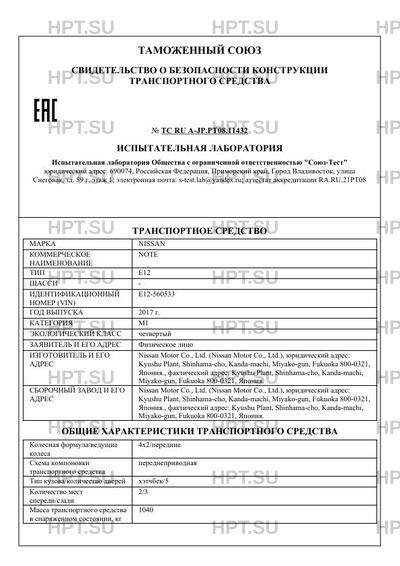 | Тип ТС | E12 |
