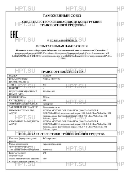 | Предприятие-изготовитель | HONDA MOTORS CORPORATION |