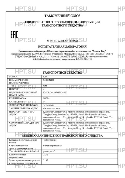 | Коммерческое наименование | SORENTO |