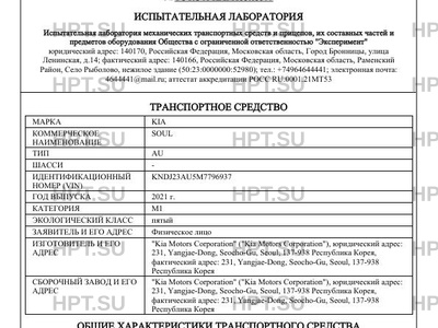 Предприятие-изготовитель "Kia Motors Corporation" ("Kia Motors Corporation"), юридический адрес: 231, Yangjae-Dong, Seocho-Gu, Seoul, 137-938 Республика Корея, фактический адрес: 231, Yangjae-Dong, Seocho-Gu, Seoul, 137-938 Республика Корея