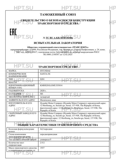 | Марка ТС | HYUNDAI |