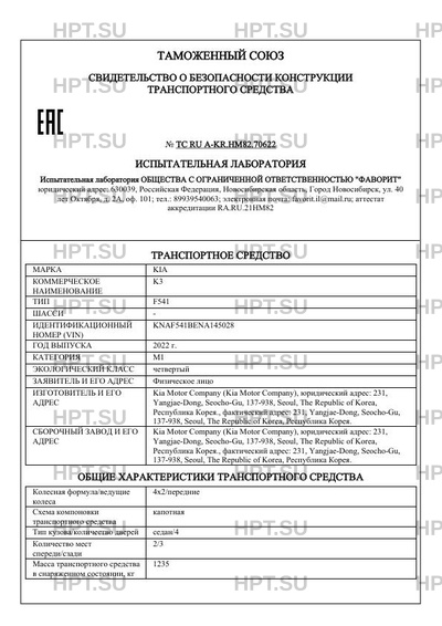 | Номер документа | ТС RU А-KR.НМ82.70622 |