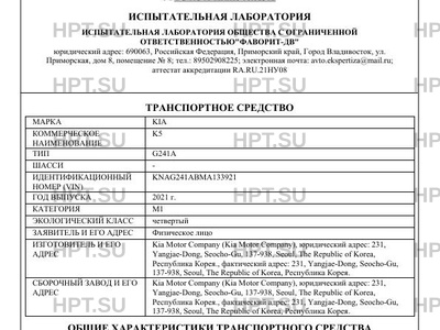 | Предприятие-изготовитель | Kia Motor Company (Kia Motor Company), юридический адрес: 231, Yangjae-Dong, Seocho-Gu, 137-938, Seoul, The Republic of Korea, Республика Корея., фактический адрес: 231, Yangjae-Dong, Seocho-Gu, 137-938, Seoul, The Republic of Korea, Республика Корея. |