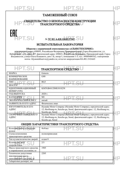 | Марка ТС | Genesis |