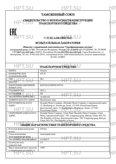 | Коммерческое наименование | GV70 |