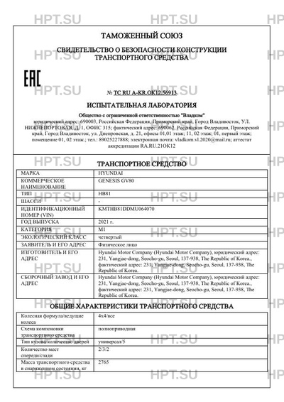 | Коммерческое наименование | GENESIS GV80 |