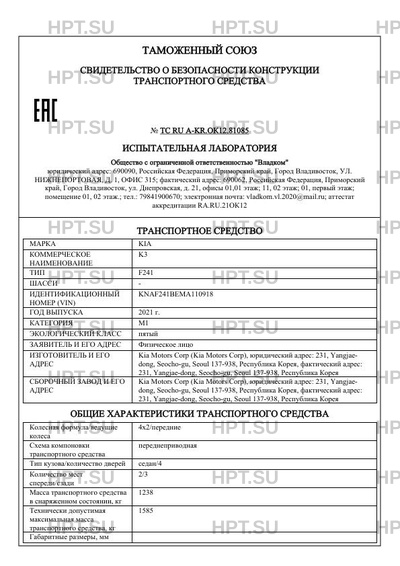 Предприятие-изготовитель Kia Motors Corp (Kia Motors Corp), юридический адрес: 231, Yangjae- dong, Seocho-gu, Seoul 137-938, Республика Корея, фактический адрес: 231, Yangjae-dong, Seocho-gu, Seoul 137-938, Республика Корея