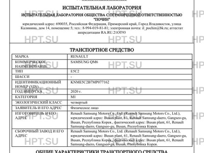 Предприятие-изготовитель Renault Samsung Motors Co., Ltd. (Renault Samsung Motors Co., Ltd.), юридический адрес: Busan plant, 61, Renault Samsung-daero, Gangseo-gu, Busan, Республика Корея., фактический адрес: Busan plant, 61, Renault Samsung-daero, Gangseo-gu, Busan, Республика Корея.