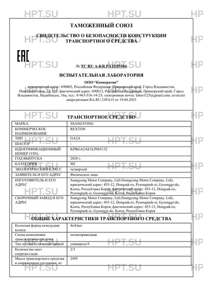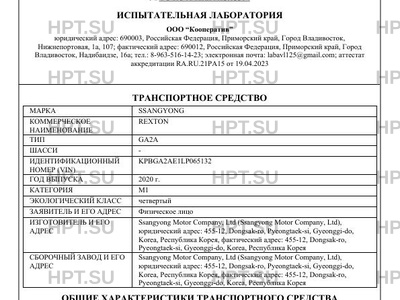 | Предприятие-изготовитель | Ssangyong Motor Company, Ltd (Ssangyong Motor Company, Ltd), юридический адрес: 455-12, Dongsak-ro, Pyeongtaek-si, Gyeonggi-do, Korea, Республика Корея, фактический адрес: 455-12, Dongsak-ro, Pyeongtaek-si, Gyeonggi-do, Korea, Республика Корея |